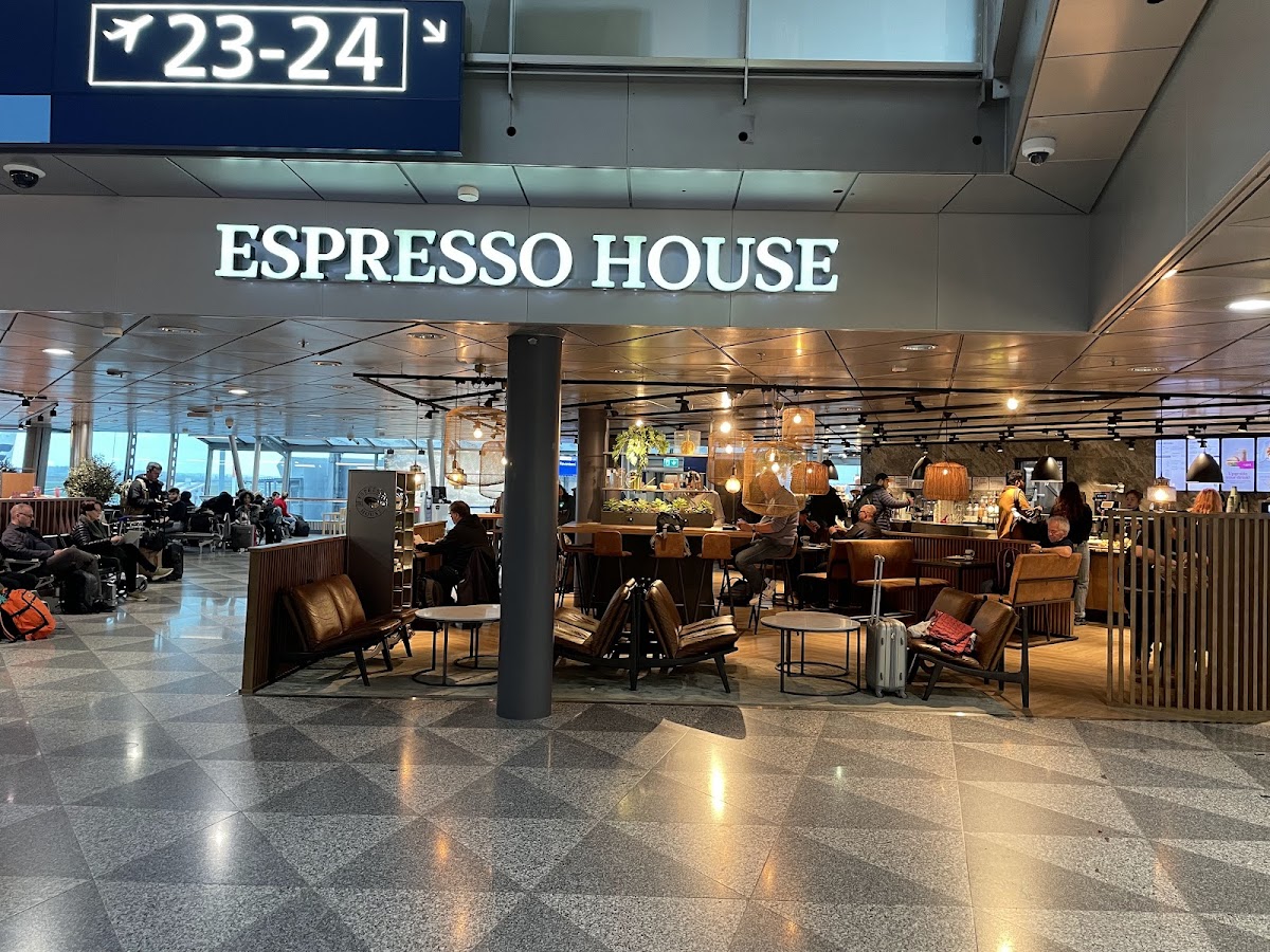 Anyone looking for best cappuccino coffee in Helsinki knows espresso house, when we arrived at the airport in the morning first thing me and my friend is looking for coffee and we found this awesome one in the 2nd floor. Coffee was traditionally made and served for us in a well designed cup and we bought some goodies in the store as well. Anyone who looks for all time coffee or snacks this is the best in airport.